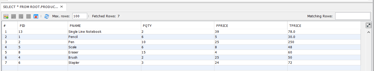 By clicking on Show Records, all the records in the product table in the database will be displayed.